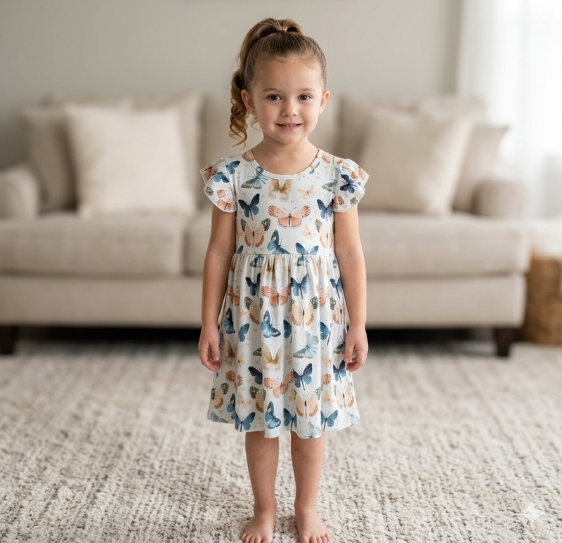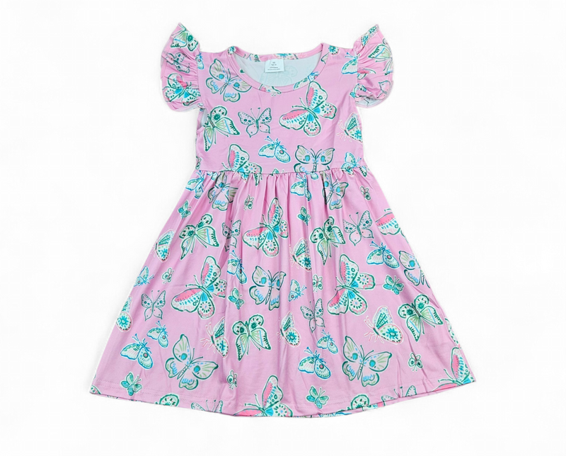 Pink Butterfly Milk Silk Dress