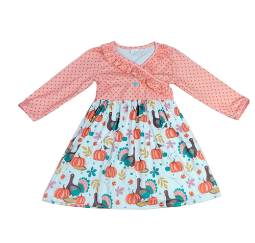 Kitties And Pumpkins Long Sleeve Milk Silk Dress