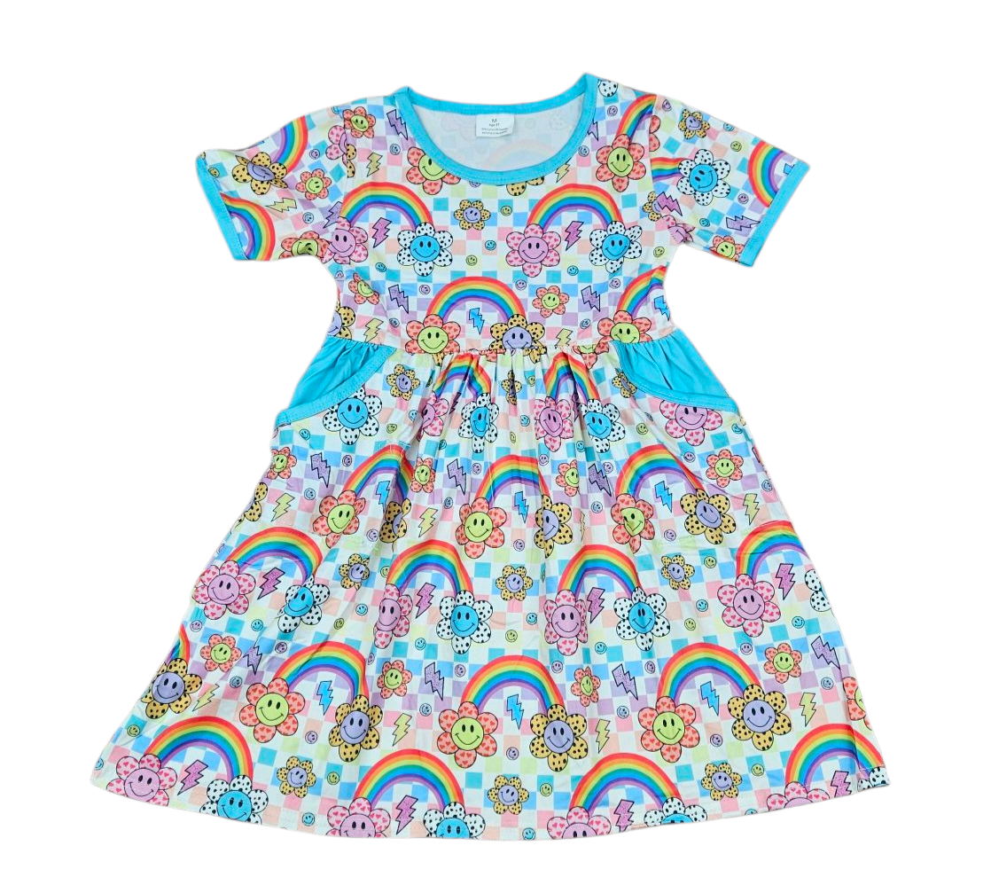 Rainbows and Smiles Short Sleeve Pocket Milk Silk Dress